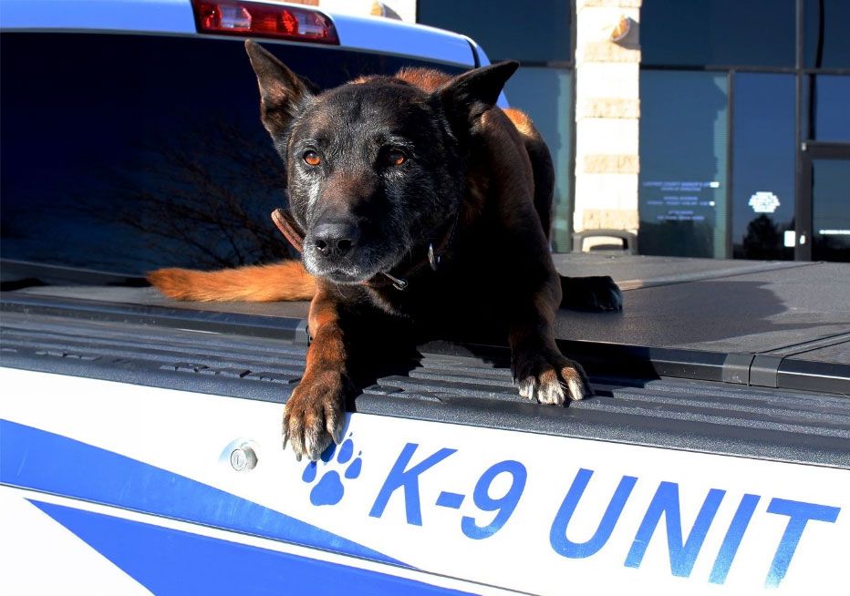 Retired K9 Deputy Arco (means bow or arch) was a black and red Belgian Malinois from the Netherlands. He was born in August 2004 and started with LCSO in 2006 after extensive training in patrol and narcotics. He was also the poster K9 for the LCSO Crime Prevention Unit’s magnet. It was a rare treat for him to be in the driver’s seat of the K9 patrol truck rather than in the back seat!