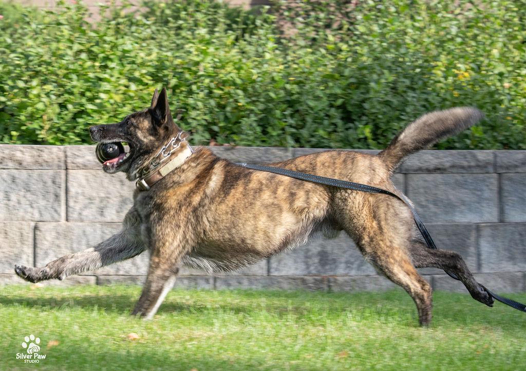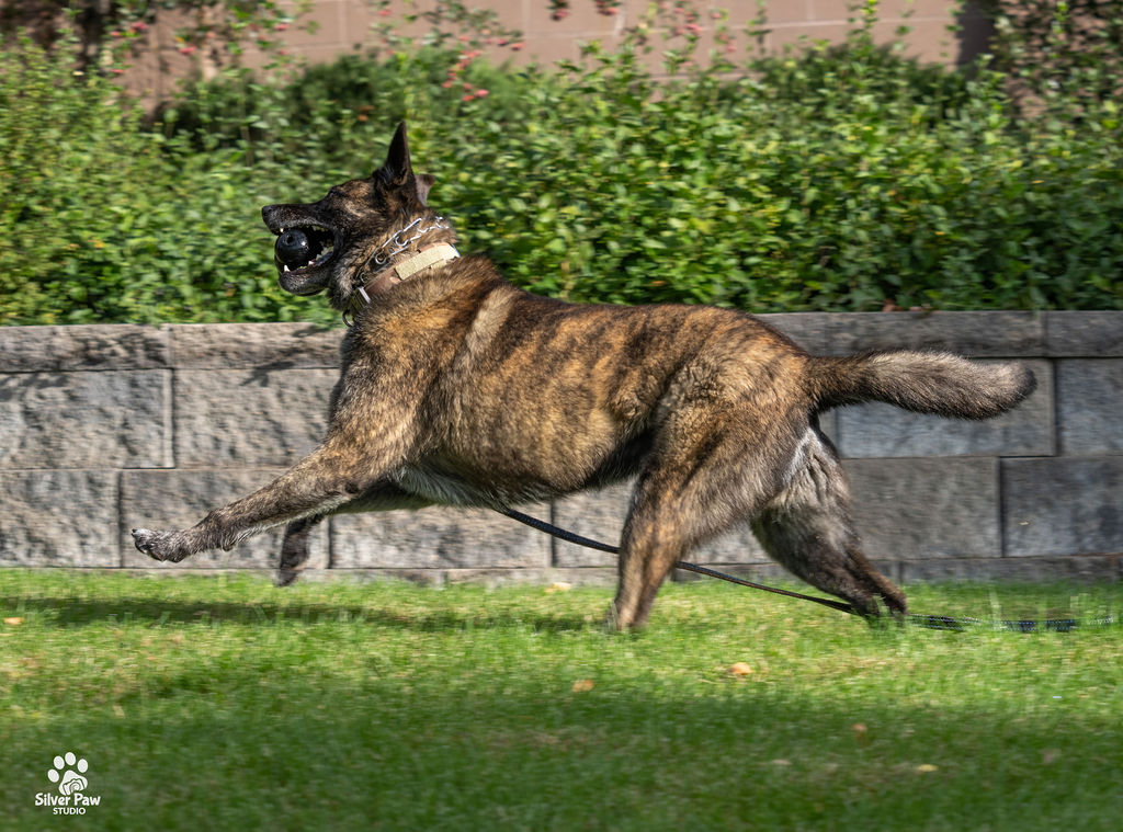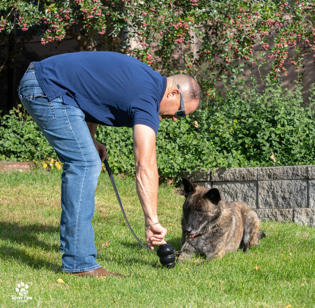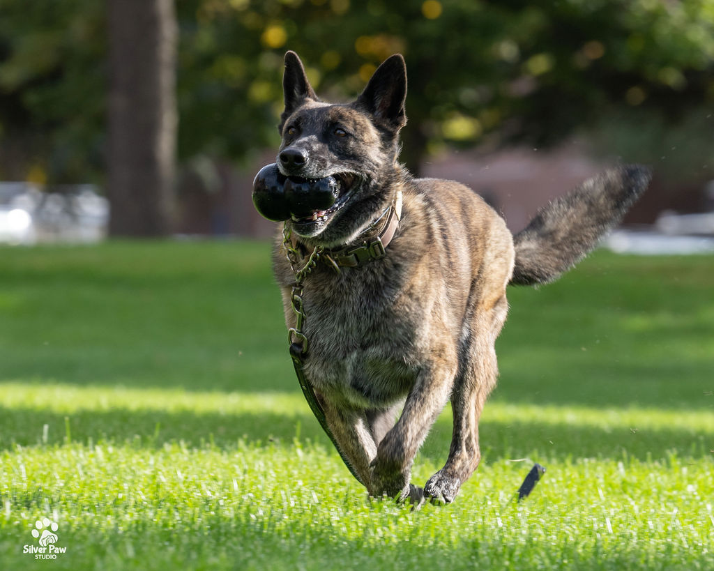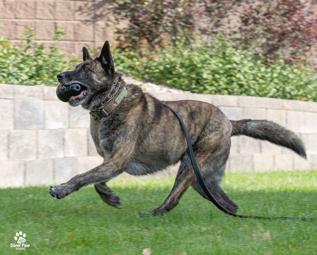 Dox loves his Kongs, running around the fields and playing with the other dogs. Whenever Deputy Feyen is home, Dox follows him around and wants to help with whatever he is doing. His favorite playmate is the family’s French Bulldog.