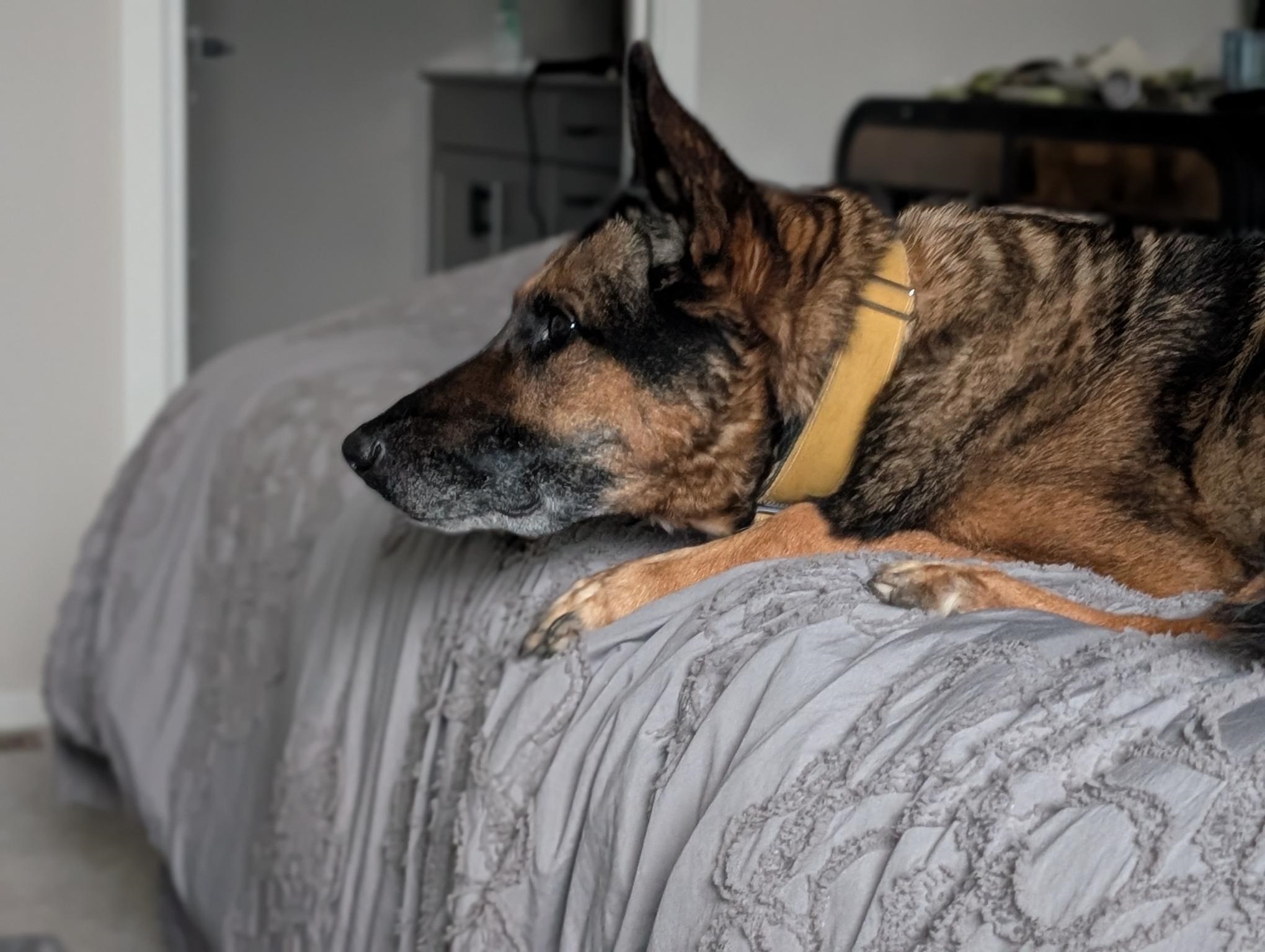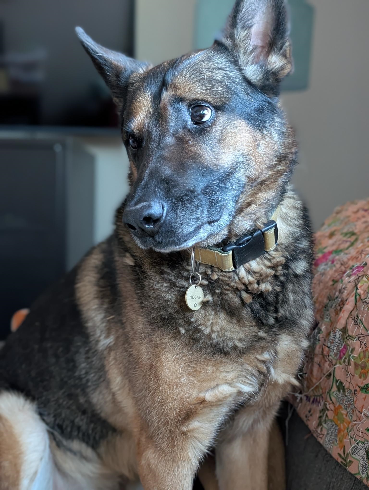 K9 Negan has been retired since July 2023 and he has enjoyed being an inside dog. His friends include a Great Pyrenees/Bernese Mountain Dog mix, a German Shorthair, a Chihuahua and a cat. Negan and the Chihuahua are best friends out of the whole crew.