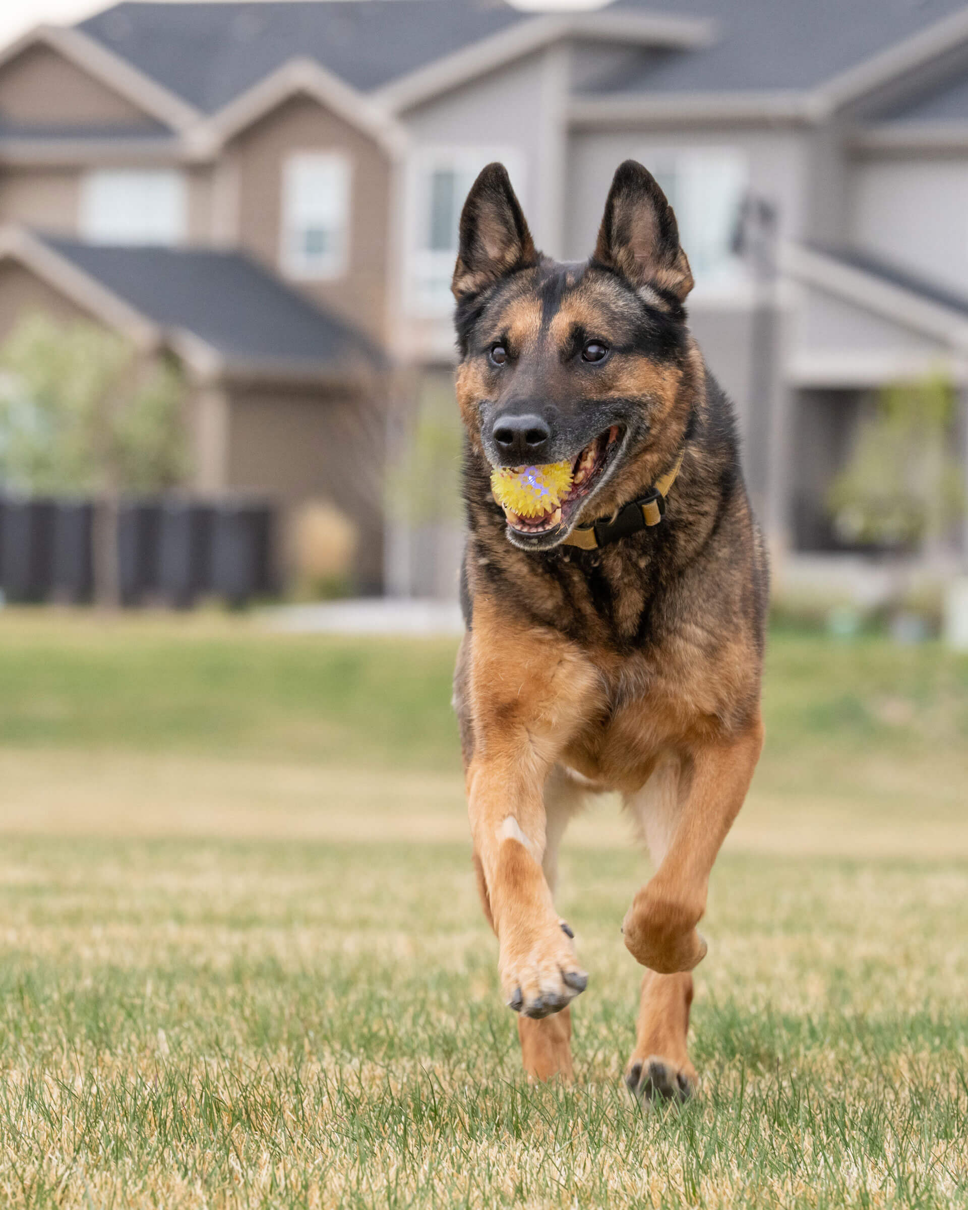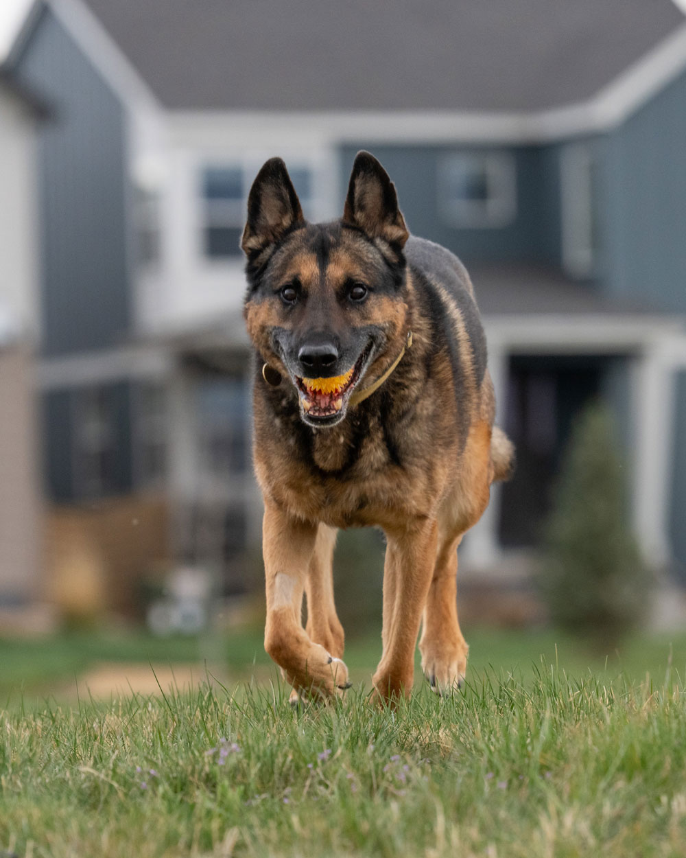 He finds rocks in the backyard to play fetch with and shoes inside the house to play fetch with as well. Everything is a toy – goes with the territory of having a dog with high prey drive.